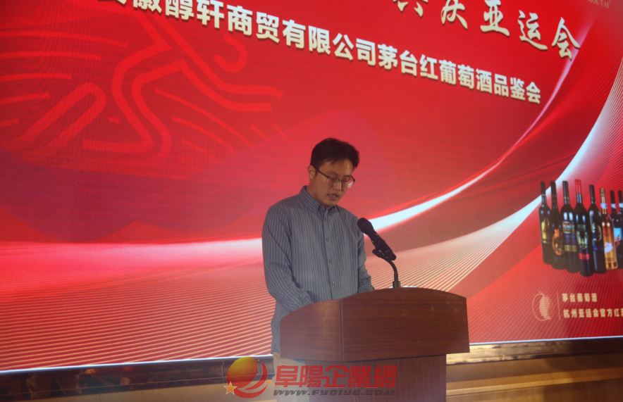 日前,由安徽醇軒商貿(mào)有限公司主辦的“舉杯茅臺(tái)紅,共慶亞運(yùn)會(huì)——安徽醇軒商貿(mào)有限公司茅臺(tái)紅酒品鑒會(huì)”活動(dòng)在阜陽(yáng)成功舉辦。該活動(dòng)以茅臺(tái)紅葡萄酒為主線,穿越運(yùn)動(dòng)、文化和體驗(yàn)之美,為亞運(yùn)會(huì)增添了濃郁的色彩。 茅臺(tái)葡萄酒安徽高帥致辭