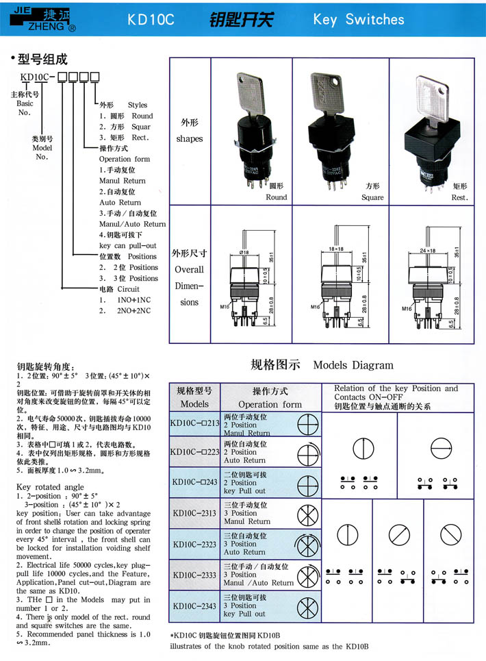 • KD10C鑰匙開關(guān) 產(chǎn)品型號:KD10C